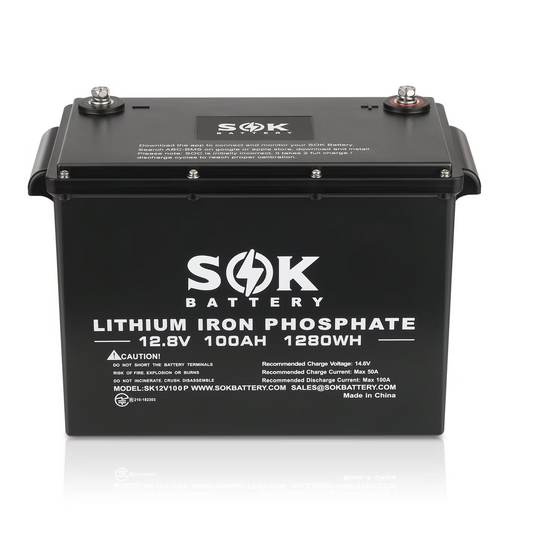 SOK 12V 100Ah LiFePO4 Lithium Battery with Bluetooth Monitoring & Built-In Heater – Deep Cycle Solar, RV & Off-Grid Power Storage