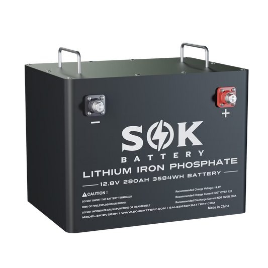 SOK 12V 280Ah LiFePO4 Lithium Battery with Bluetooth & Heater – High Capacity Deep Cycle, 8000–12000 Cycles, Smart BMS, RV & Marine Power